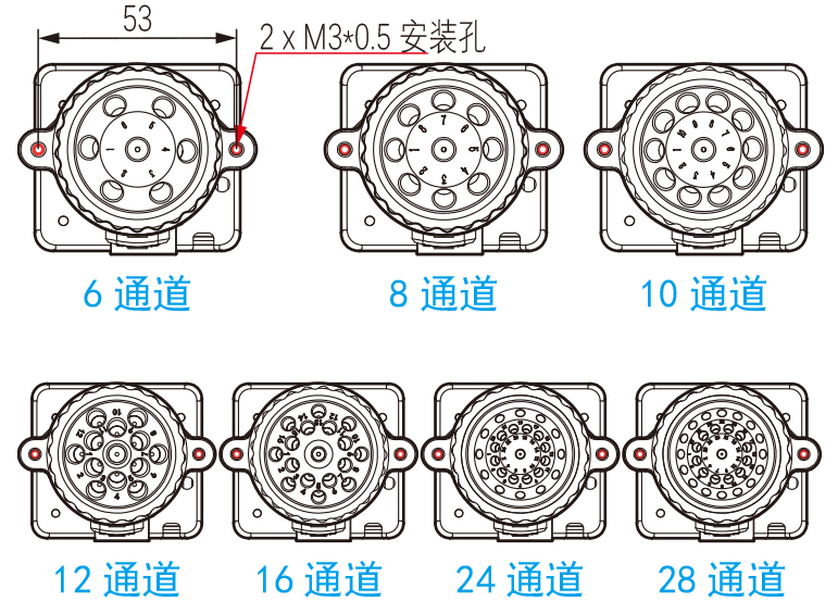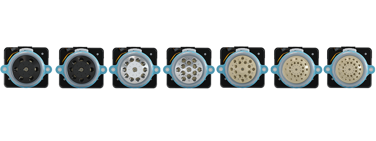 ●流路配置:提供 6/8/10/12/16/24/28多種通道閥頭,1.2/1.0/0.6mm 通徑