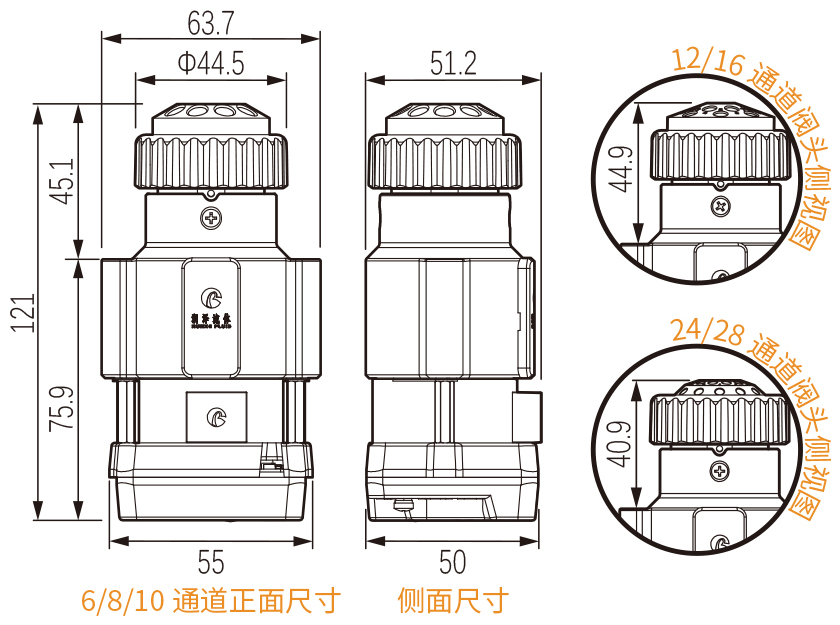 2、流路配置:提供6/8/10/12/16/24/28多種通道閥頭,1.2/1.0/0.6mm通徑,滿足不同行業(yè)的需求,可根據(jù)需要定制閥芯流道,各種復(fù)雜的流路。