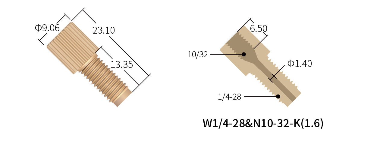 ◆ 用于有效連接不同螺紋的連接器, 適用于標準1/4-28UNF、5/16-24UNF或10-32UNF接頭,可將這些接頭轉(zhuǎn)接至1/2-20UNF、1/4-28UNF、10-32UNF 內(nèi)螺紋接頭或設備,實現(xiàn)不同流路的無泄漏對接