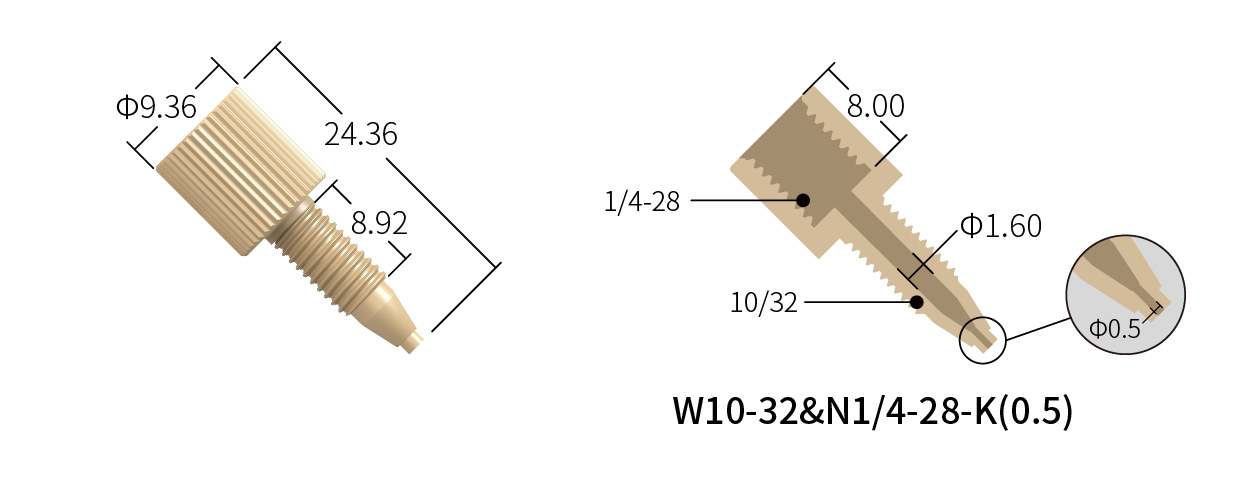 ●適配管路:適用于標準1/4-28UNF平底螺紋接頭或5/16-24UNF平底螺紋接頭