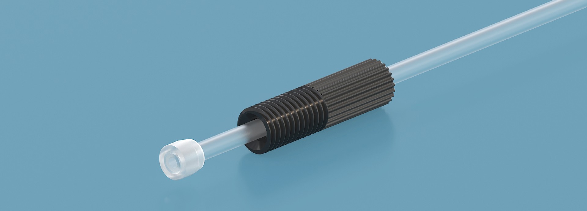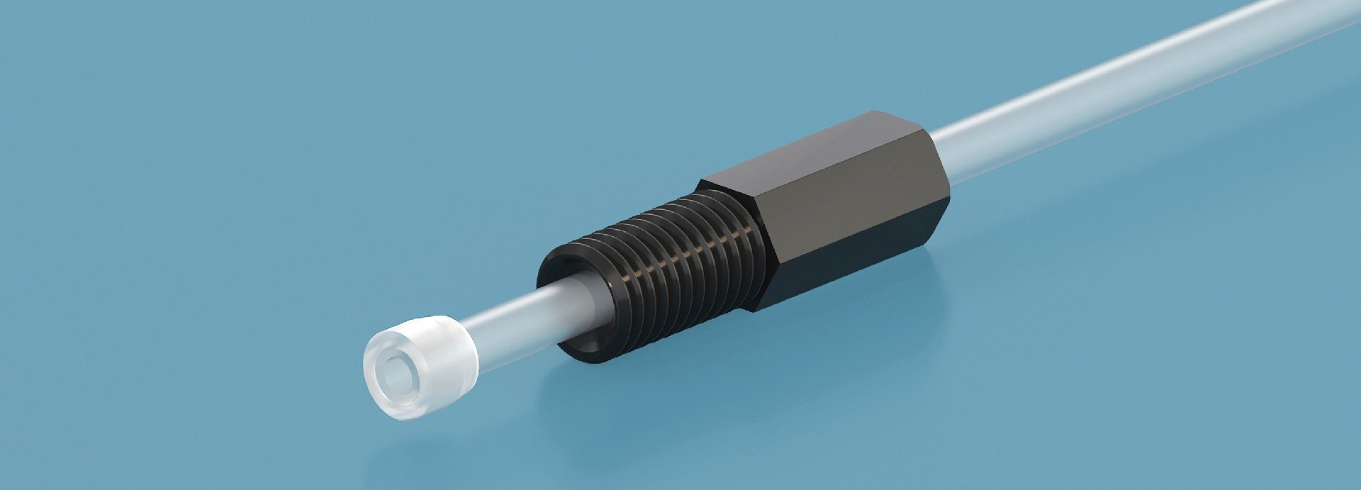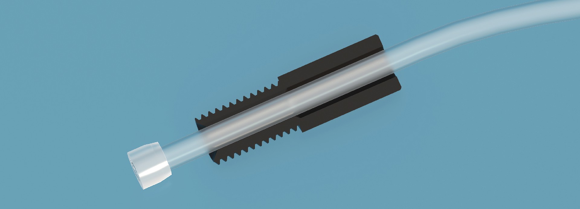 2.依次套入倒錐壓塞、壓環(huán),手動調(diào)整使壓環(huán)底部與硬管端面齊平,并使壓環(huán)的錐形端與倒錐壓塞螺紋端相吻合。