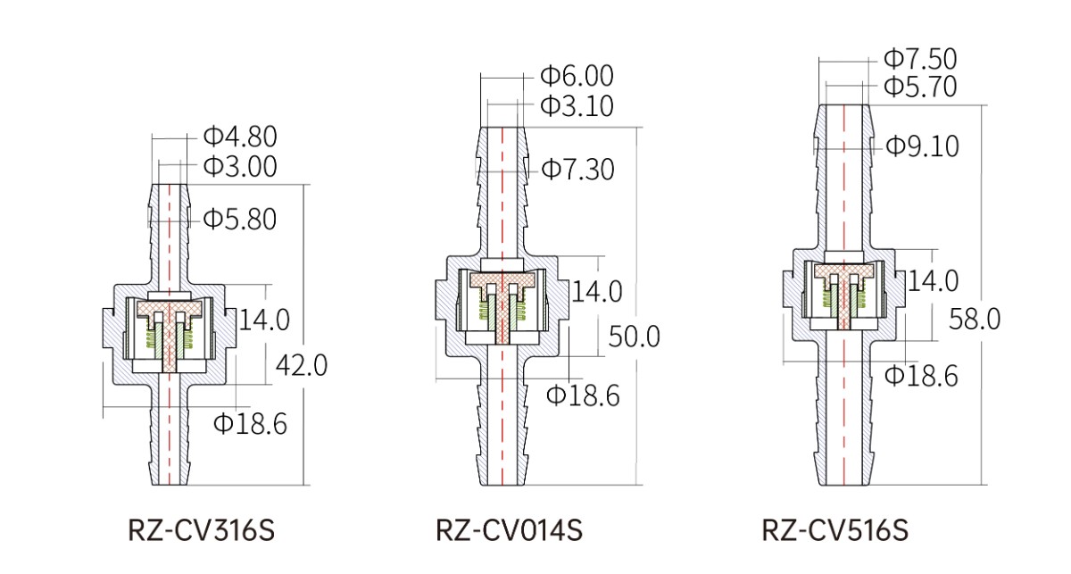 ◆ 隔膜單向閥、鴨嘴單向閥、彈簧單向閥,三種形式可選