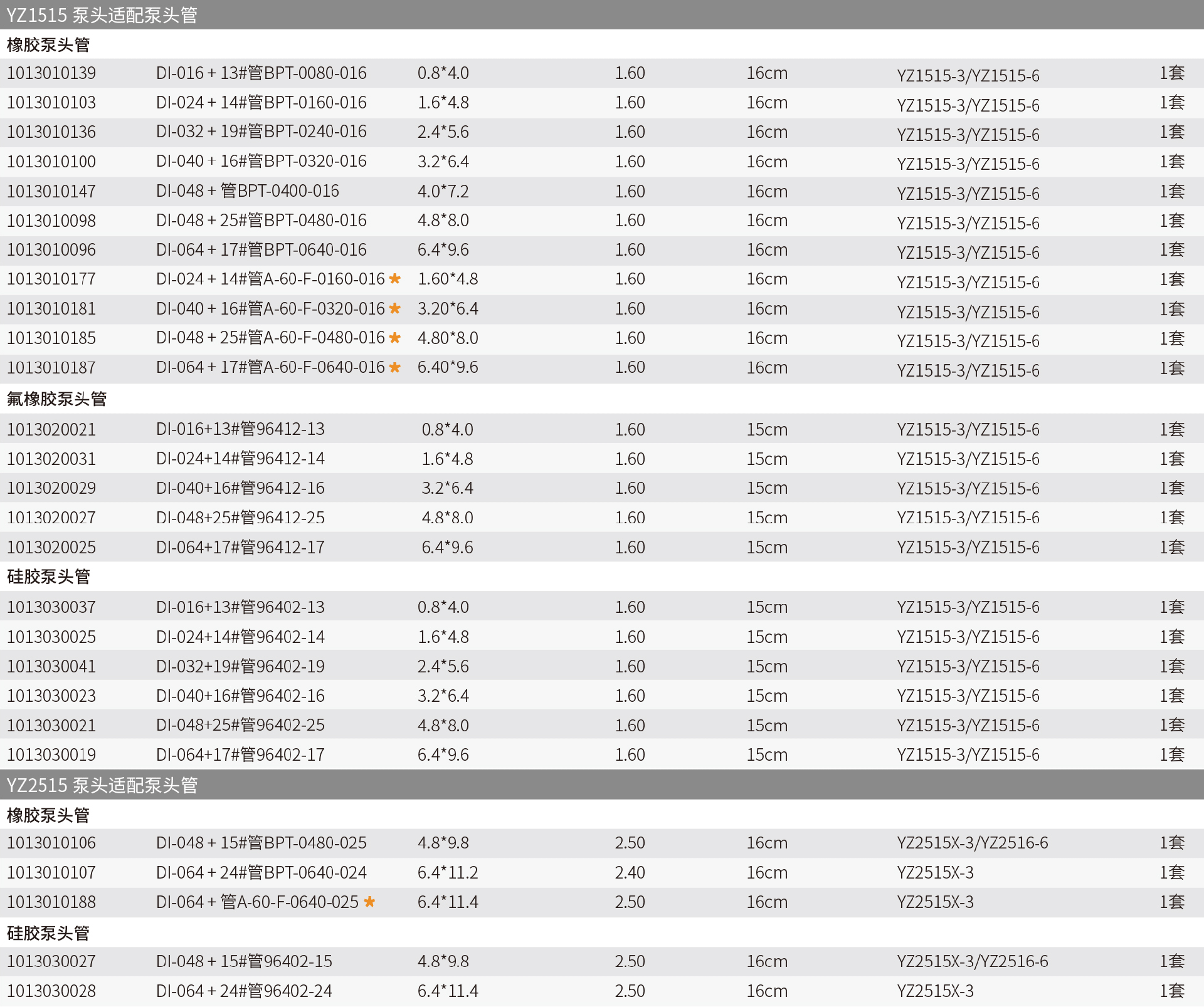 ●適配泵頭:SN15/YZ1515X/YZ2515X/RZ1030/RZ1030B/RZ01/RZ02">