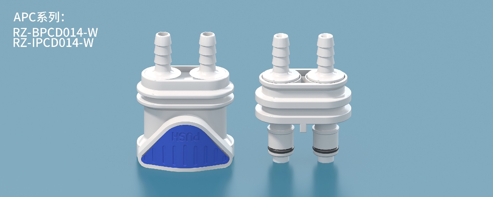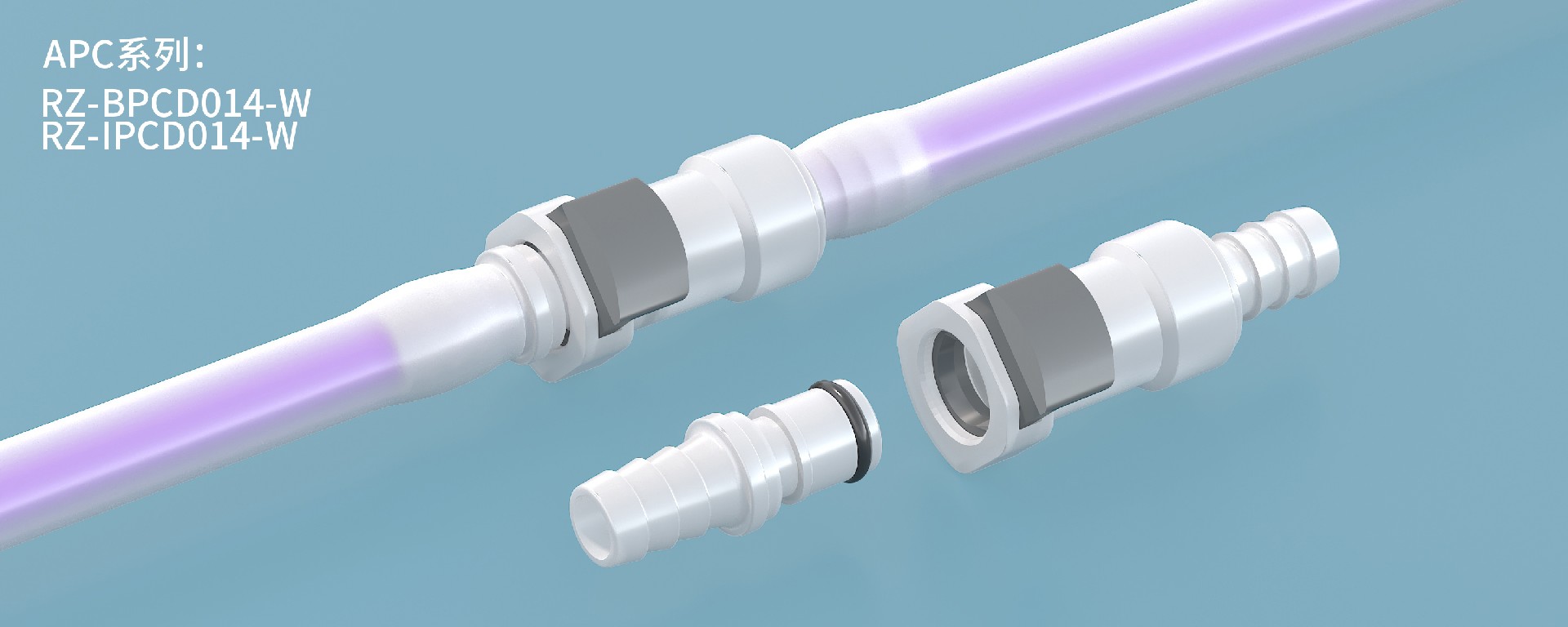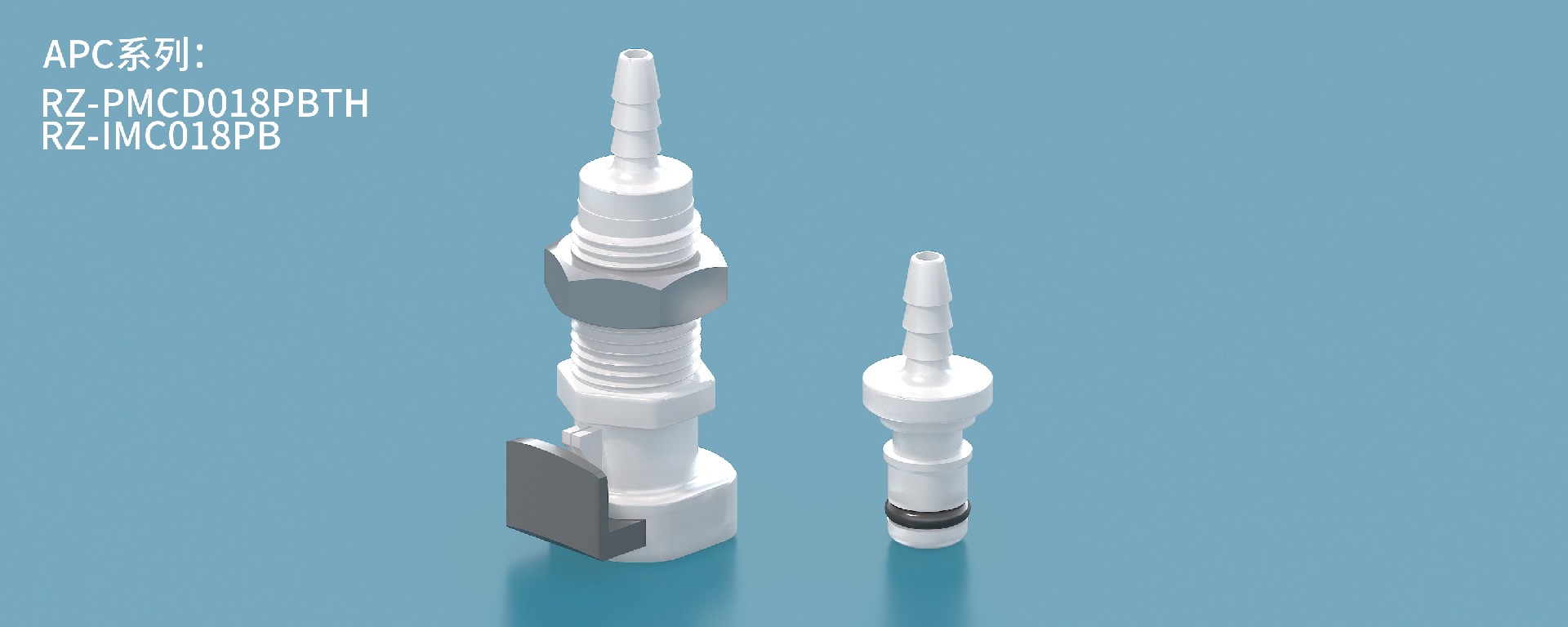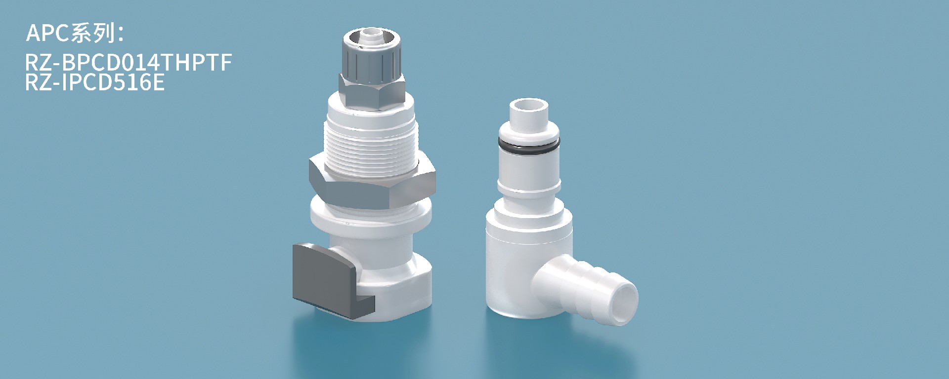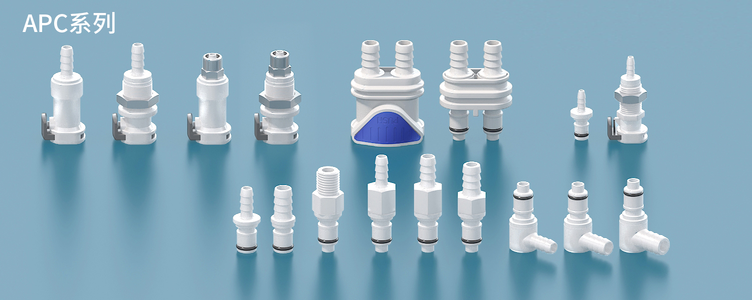 ◆ APC 系列接頭特點是有一個塑料指鎖,活動件少,外形流暢,設計便于使用,外形精巧、流量高
